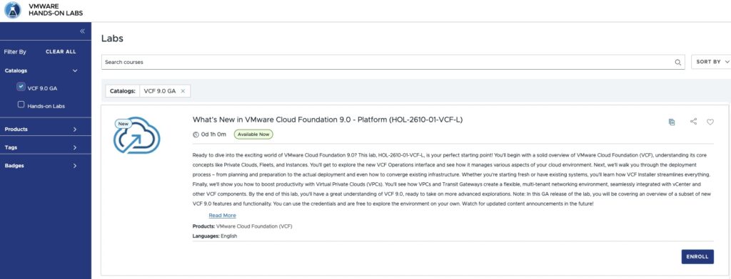 We launched new VCF 9.0 Hands on Labs today to coincide with the launch of VCF 9.0!!