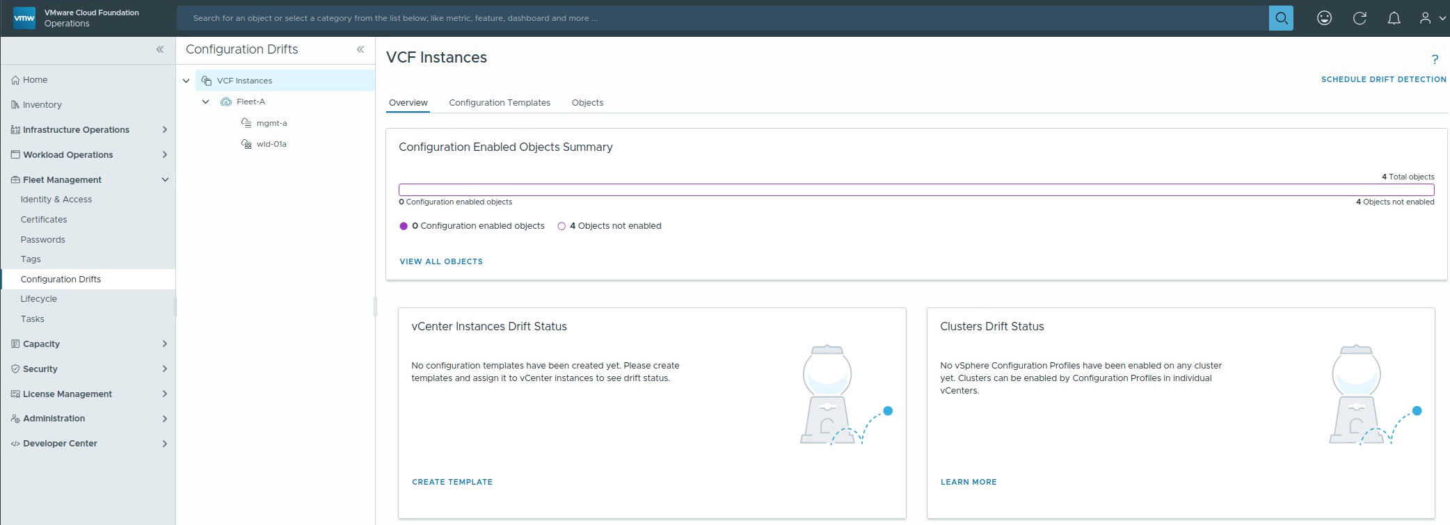From VCF Ops – Fleet Management, Configuration Drifts already existed from 5.2. However, it looks a lot different.